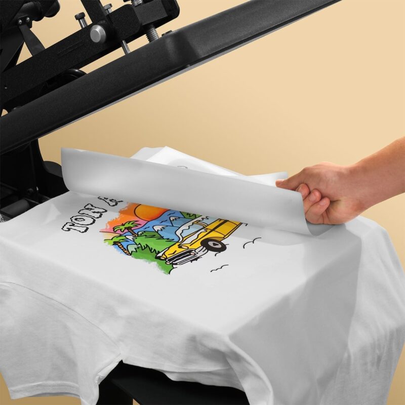 - Heat Press Transfer The transfers are applied to garments using a heat press. Pressing times and temperatures are consistent, making the process fast and reliable.