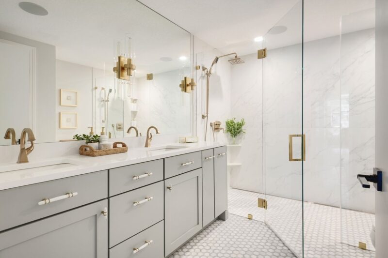 - Does your budget comfortably cover the extra plumbing and fixtures that come with a second sink, or would that money make a bigger difference elsewhere in the room, such as in the shower, tile or lighting?