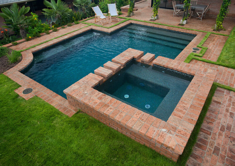 Here are some creative ways to use brick tiles around your pool or hot tub: