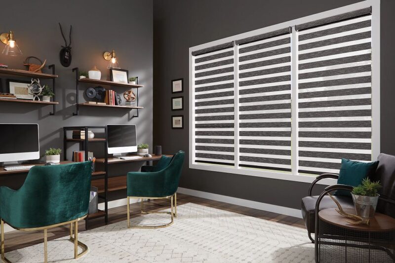 Layered shades, often called zebra shades, use alternating bands of sheer and opaque fabric. As you shift the layers, the bands overlap to create either filtered light or full privacy. This makes layered shades both functional and contemporary looking, ideal for modern homes that want something visually dynamic.